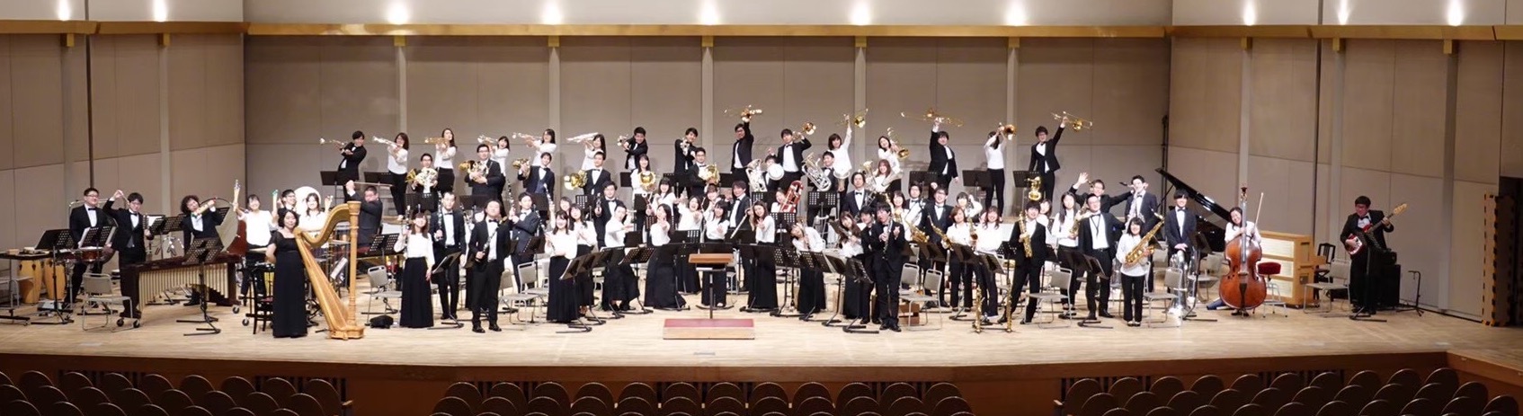楽団紹介 当楽団は、東京都の各大学のOBの有志によって2010年に結成された吹奏楽団です。 結成以来、およそ年に1回のペースでコンサート・ライブを開催しています。 過去の演奏会 第5回コンサート・ライブ 2015/12/27(日) @所沢市民文化センター ミューズ アークホール イーストコーストの風景、宇宙の音楽, 他 第6回コンサート・ライブ 2016/1/22(日) @ウエスタ川越 大ホール ハンガリー狂詩曲、孔雀変奏曲、他 第7回コンサート・ライブ 2018/3/4(日) @練馬文化センター大ホール アルメニアンダンス・パート2, バレエ音楽「火の鳥」(1919年版), 他 第8回コンサート・ライブ 2019/2/24(日) @ウエスタ川越 大ホール 「GR」よりシンフォニック・セレクション(大編成版), 幻想交響曲より, 他 第9回コンサート・ライブ 2020/2/9(日) @和光市民文化センターサンアゼリア 大ホール 交響曲第3番 / J. バーンズ, 歌劇「イーゴリ公」よりだったん人の踊り, 他 第10回コンサート・ライブ 2022/2/27(日) @ウエスタ川越 大ホール エニグマ変奏曲, ルイ・ブルジョアの賛美歌による変奏曲, 他 第11回コンサート・ライブ 2023/2/26(日) @ウエスタ川越 大ホール アルプル交響曲, トリトン, 他 第12回コンサート・ライブ 2024/3/24(日) @ウエスタ川越 大ホール バレエ組曲「シバの女王ベルキス」, 交響組曲第2番「GR」よりトレインチェイス・エディション, 他 第13回コンサート・ライブ 2025/4/27(日) @ウエスタ川越 大ホール 歌劇「トゥーランドット」より、スピリテッド・アウェイ「千と千尋の神隠し」より、ダンス・ムーブメント、他